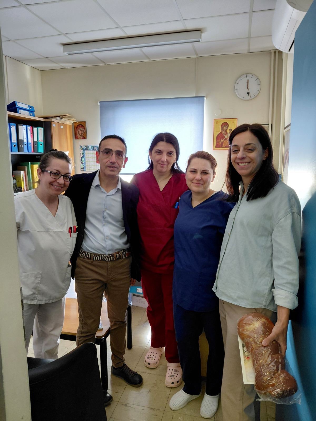 Με μια ζεστή και συμβολική κίνηση, το Διοικητικό Συμβούλιο του Σωματείου μας με τα Μέλη της διοίκησης του Εργαζομένων Παγνη , αποτελούμενο από τον Δημήτρη Βρύσαλη πρόεδρο του σωματείου ,Νάνσυ Τζαβάρα ειδικό γραμματέα του ΔΣ του σωματείου και εκπρόσωπο των εργαζόμενων στο ΔΣ του νοσοκομείου ,την Δέσποινα Παπαγιαννάκη μέλος του σωματείου το Μ βρέθηκε σήμερα κοντά στους συναδέλφους που εργάζονται στις βάρδιες, μεταφέροντας το μήνυμα της αλληλεγγύης και των γιορτινων ημερών του Πάσχα.