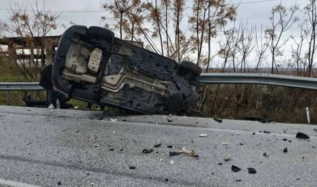 Το ένα αυτοκίνητο ντεραπάρισε και εξετράπη της πορείας του καταλήγοντας στις προστατευτικές μπάρες του δρόμου.