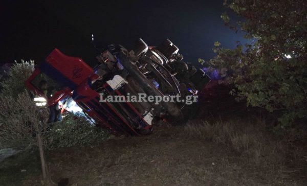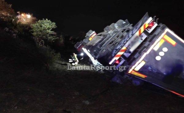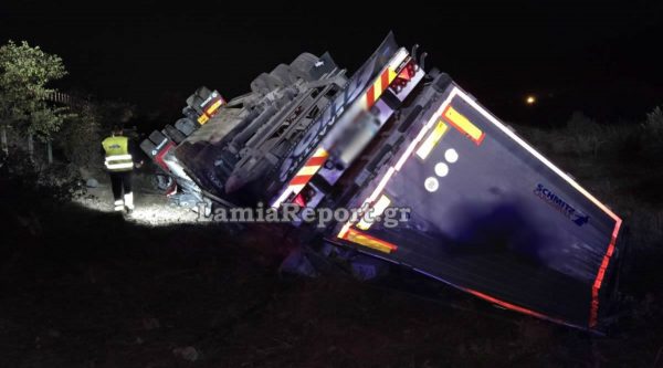 Τροχαίο σοκ στη Λαμία: Ανατροπή νταλίκας από σκάσιμο λάστιχου – Άγιο είχε ο οδηγός – Δείτε εικόνες