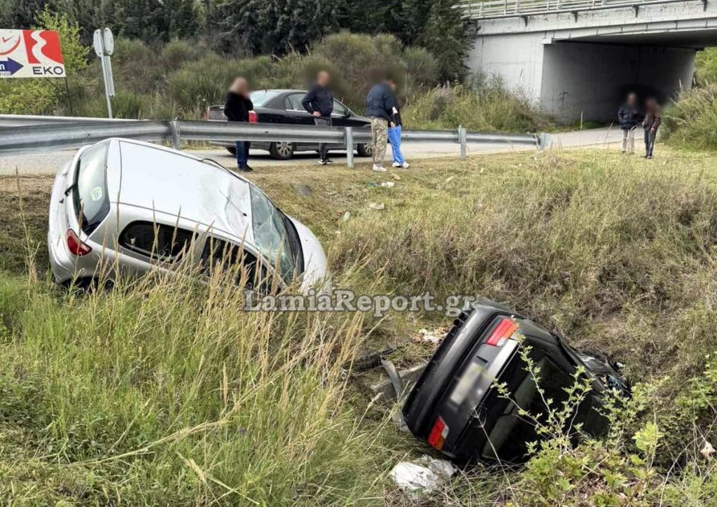 Όπως βλέπετε και στις φωτογραφίες του LamiaReport τα δύο αυτοκίνητα μετά τη σύγκρουση «πέταξαν» πάνω από τις μπάρες και προσγειώθηκαν μέσα στα χωράφια και συγκεκριμένα σε σούδα, που για καλή τους τύχη δεν είχε νερό.