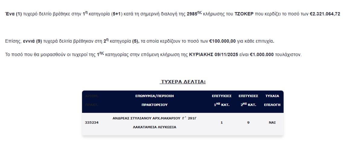 - Το τυχερό δελτίο παίχτηκε στη Λευκωσία.