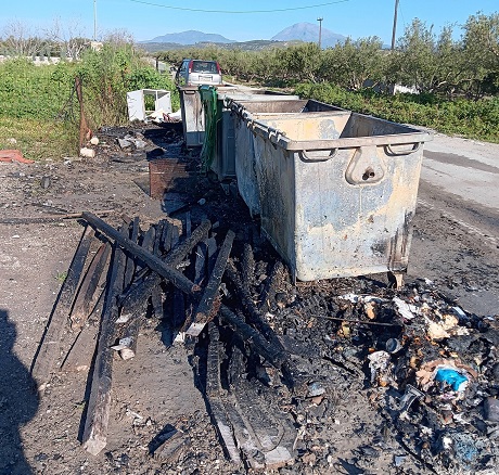 Οι κατεστραμμένοι κάδοι παραμένουν στο σημείο, ως υπενθύμιση του συμβάντος, αλλά και ως παράδειγμα προς αποφυγή για το μέλλον.