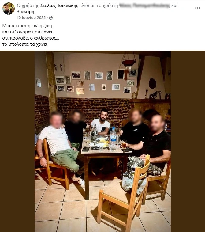 Στις 10 Ιουνίου 2025, ακριβώς έξι μήνες πριν σκοτωθεί, είχε αναρτήσει στο Facebook μία φωτογραφία με αγαπημένα πρόσωπα και φίλους να κάνουν παρέα, συνοδεύοντας μάλιστα το στιγμιότυπο με μία μαντινάδα του Μανώλη Βιτώρου (Μπαχλή).
