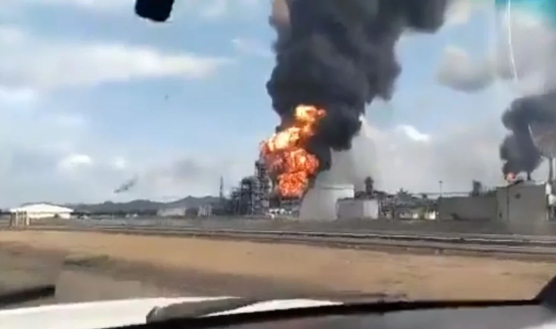 Η έκρηξη προκάλεσε πυρκαγιά στο εργοστάσιο, ενώ τεράστια σύννεφα μαύρου καπνού εμφανίστηκαν στον ουρανό.