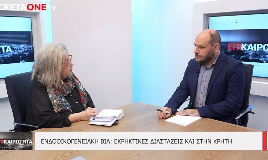 Στο Cretaone TV και στην εκπομπή Επικαιρότητα με τον Γιώργο Λαμπράκη, μίλησε η πρόεδρο του Συνδέσμου κα Μαίρη Παχιαδάκη, η οποία αναφέρθηκε στις πρωτοβουλίες για ανάσχεση της ζοφερής αυτής πραγματικότητας.