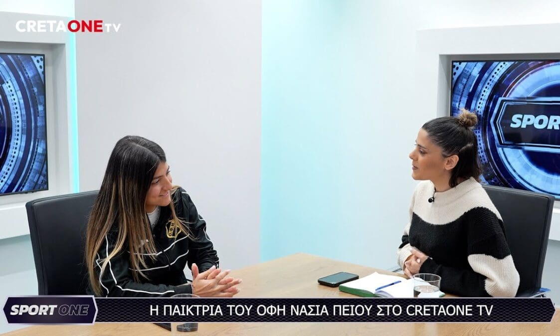 Η Νάσια Πέιου, αρχηγός της γυναικείας ομάδας ποδοσφαίρου του ΟΦΗ, μίλησε στη δημοσιογράφο Ειρήνη Σαμαριτάκη, τόσο για το περιβόητο γκολ… αλά Φαν Μπάστεν που πέτυχε στο παιχνίδι κόντρα στη Ρέα, αλλά δεν παρέλειψε να αναφερθεί και στην φετινή σεζόν του αγαπημένου της ΟΦΗ, όπως και στο γυναικείο ποδόσφαιρο γενικότερα…