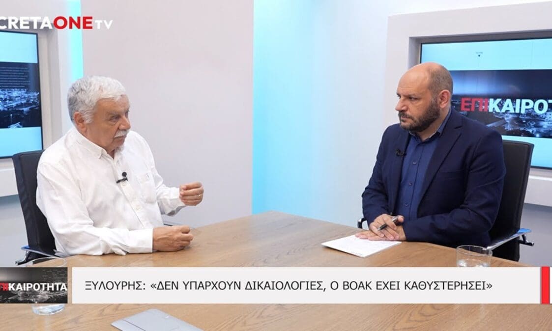 Στις μεγάλες καθυστερήσεις που υπάρχουν γύρω από την κατασκευή του νέου ΒΟΑΚ, στο μείζον ζήτημα της διαχείρισης του νερού τα επόμενα χρόνια, αλλά την ανάγκη θωράκισης των υποδομών του νησιού απέναντι στην κλιματική αλλαγή, αναφέρθηκε ο αντιπεριφερειάρχης Περιβάλλοντος και Ενέργειας κ. Νίκος Ξυλούρης, μιλώντας στο Cretaone TV και στην εκπομπή Επικαιρότητα με τον Γιώργο Λαμπράκη.