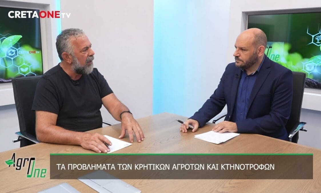 Με μελανά χρώματα περιέγραψε την κατάσταση του πρωτογενούς τομέα στην Κρήτη, ο κ. Πρίαμος Ιερωνυμάκης, Εντεταλμένος περιφερειακός σύμβουλος Για την Ποιότητα Ζωής της Υπαίθρου, μιλώντας στην εκπομπή AgroOne του CretaoneTV με τον Γιώργο Λαμπράκη.
