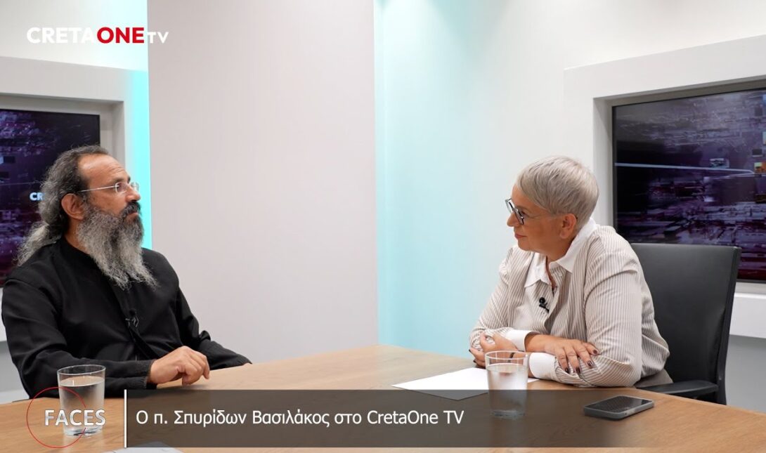 Ο π. Σπυρίδων Βασιλάκος, θεολόγος συναντά την Αντιγόνη Ανδρεάκη στην εκπομπή Faces στο CretaOne TV.
