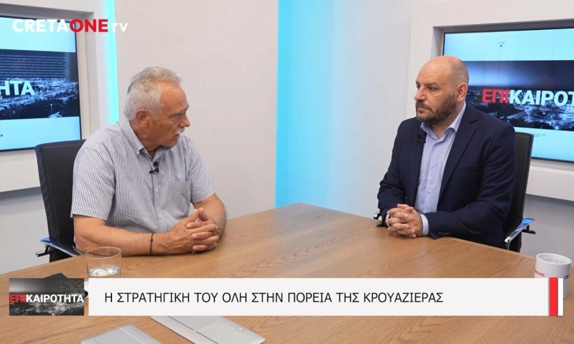 Ο πρόεδρος του Οργανισμού Λιμένος Ηρακλείου κ. Γιάννης Βαρδαβάς, μίλησε στην εκπομπή Επικαιρότητα του CretaoneTV με τον Γιώργο Λαμπράκη, για την πορεία της κρουαζιέρας, για την στρατηγική του ΟΛΗ και τις προοπτικές περαιτέρω ανάπτυξης που ανοίγονται μέσω της επένδυσης Γκριμάντι στο λιμάνι.