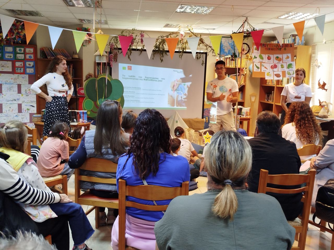 Το απόγευμα της Παρασκευής οι δράσεις κορυφώθηκαν σε μια ανοιχτή εκδήλωση δημιουργίας, μάθησης και γιορτής στον χώρο της Παιδικής Βιβλιοθήκης Σούδας με τη συμμετοχή μαθητών – τριών της Δ΄ Τάξης του 1ου Δημοτικού Σχολείου Σούδας, γονέων, εκπαιδευτικών και φίλων της Βιβλιοθήκης. Υπό την καθοδήγηση της ψυχοπαιδαγωγού -διαχειρίστριας περιβαλλοντικών έργων, Δομνίκης Βαγιάτη, δημιουργήθηκε ένας πρότυπος λαχανόκηπος στην αυλή της Βιβλιοθήκης, εγκαινιάστηκε έκθεση με τα καλλιτεχνικά έργα των παιδιών, με θέμα τη βιωσιμότητα, ενώ ακολούθησε γιορτή με πολλές εκπλήξεις.