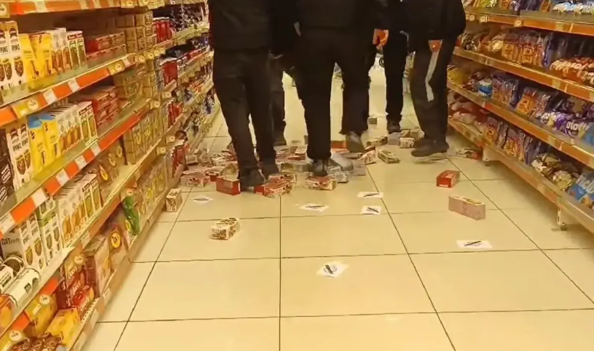 - Οι διαδηλωτές φώναζαν συνθήματα, πέταξαν τρικάκια και έριξαν προϊόντα της επιχείρησης από τα ράφια.