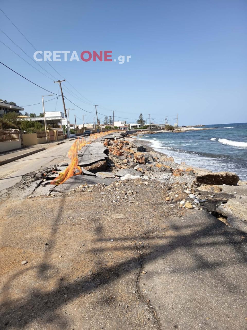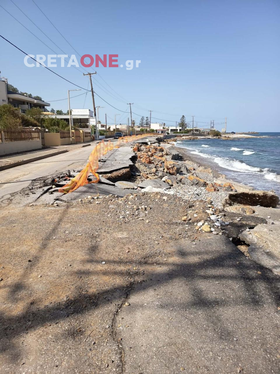 Όπως φαίνεται από τις φωτογραφίες που δημοσιεύει το Cretaone και σήμερα Πέμπτη 5 Μαρτίου, ο δρόμος κατά μήκος της παραλιακής έχει κοπεί σχεδόν από τη μέση, με αποτέλεσμα να υπάρχει μεγάλος κίνδυνος για οδηγούς και πεζούς που κυκλοφορούν στην περιοχή.