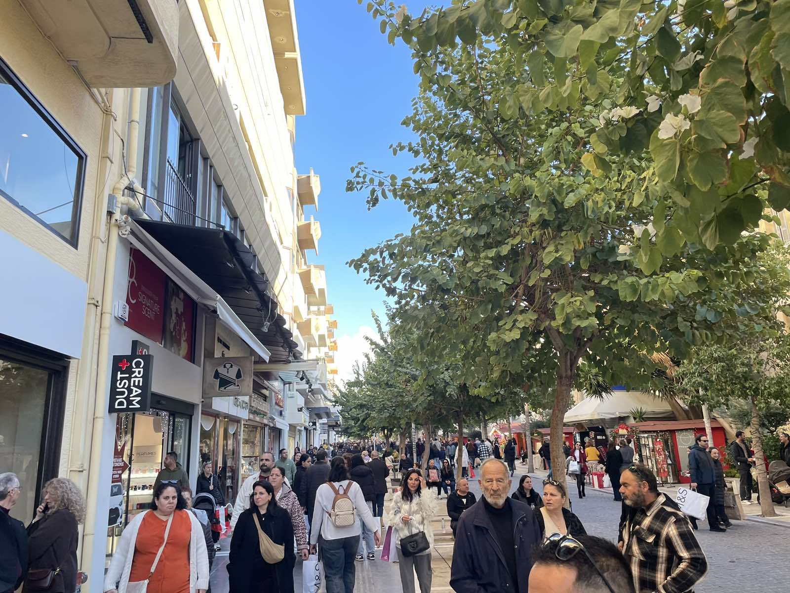 Ανοιχτά καταστήματα, γεμάτα καφέ και εστιατόρια, έντονη κίνηση στους εμπορικούς δρόμους και τελευταίες αγορές δώρων σε ρυθμούς γιορτής