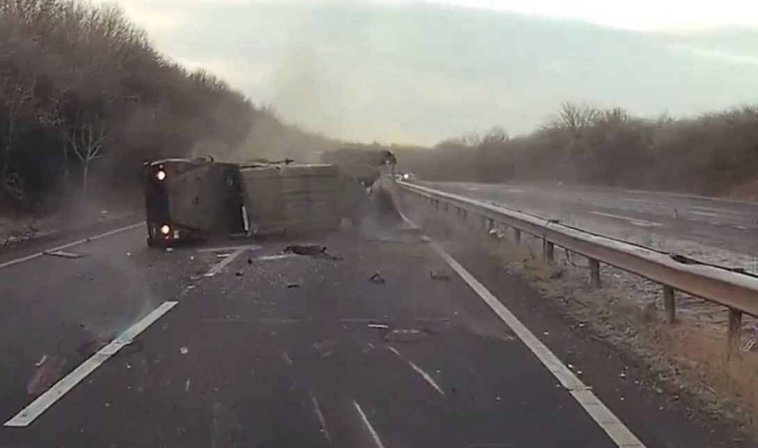 Ένα σοβαρό τροχαίο ατύχημα στη Βρετανία, το οποίο καταγράφηκε σε βίντεο και έχει διαδοθεί ευρέως στο διαδίκτυο, δείχνει στρατιωτικό όχημα να ανατρέπεται έπειτα από επικίνδυνο ελιγμό για την αποφυγή σύγκρουσης, σύμφωνα με δημοσίευμα της Sun.