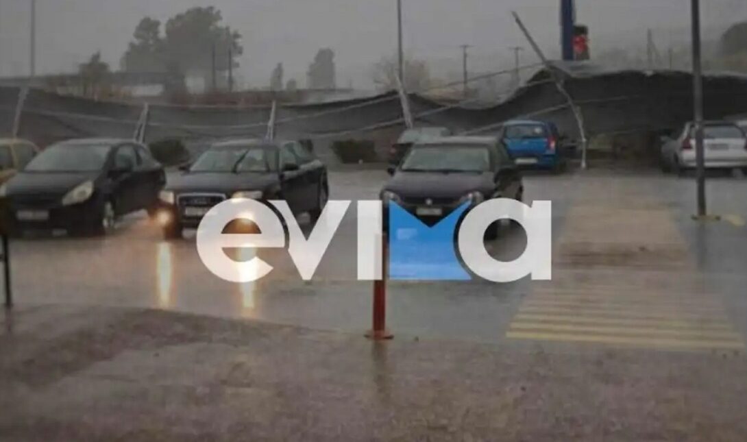 Ξαφνικό μπουρίνι προκάλεσε ζημιές έξω από σούπερ μάρκετ στην Εύβοια – Πλημμύρισαν δρόμοι από την κακοκαιρία