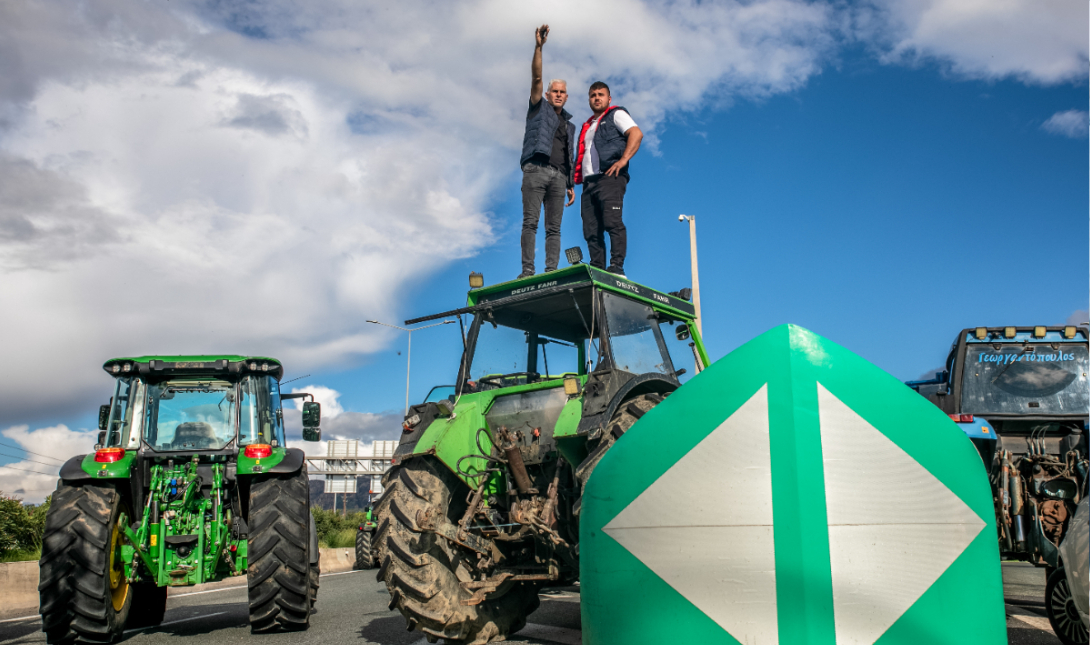 - Οι αγρότες αποφάσισαν να μετακινήσουν τα τρακτέρ τους στην άκρη του δρόμου.