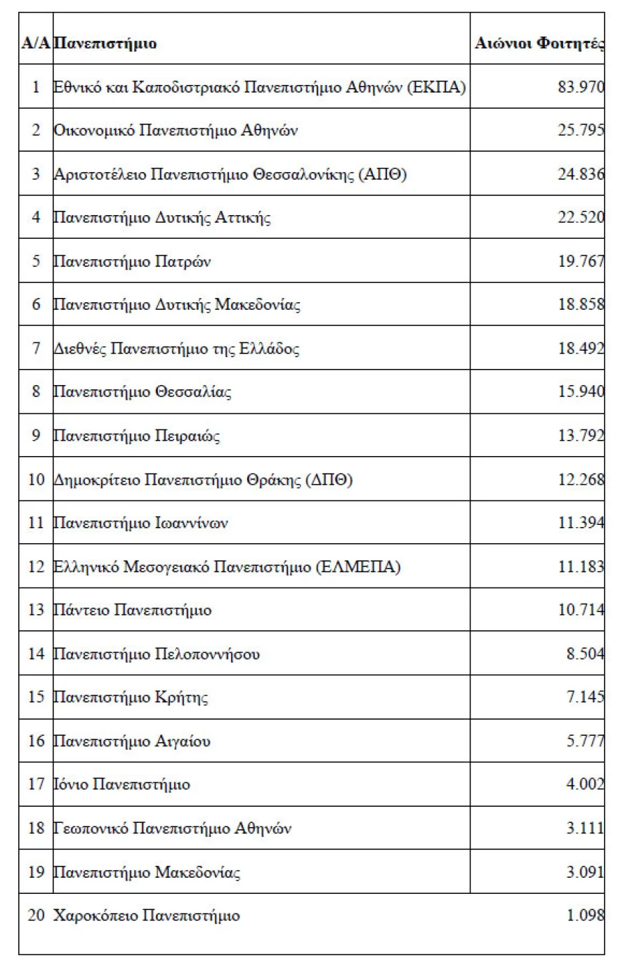 Οι «αιώνιοι» φοιτητές ανά πανεπιστήμιο